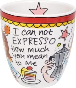 Blond Amsterdam, Even Bijkletsen Mini Mok Rode Rand Zonder Oor, 0,2L