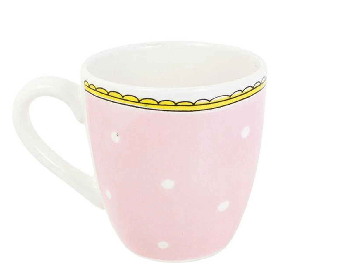 Deze lichtroze minimok met witte stipjes en een gele bovenrand behoort tot de collectie Even Bijkletsen van Blond Amsterdam. In de minimok staat een illustratie van een roze hart afgebeeld. De minimok is leuk te combineren met het andere servies uit de collectie Even Bijkletsen.