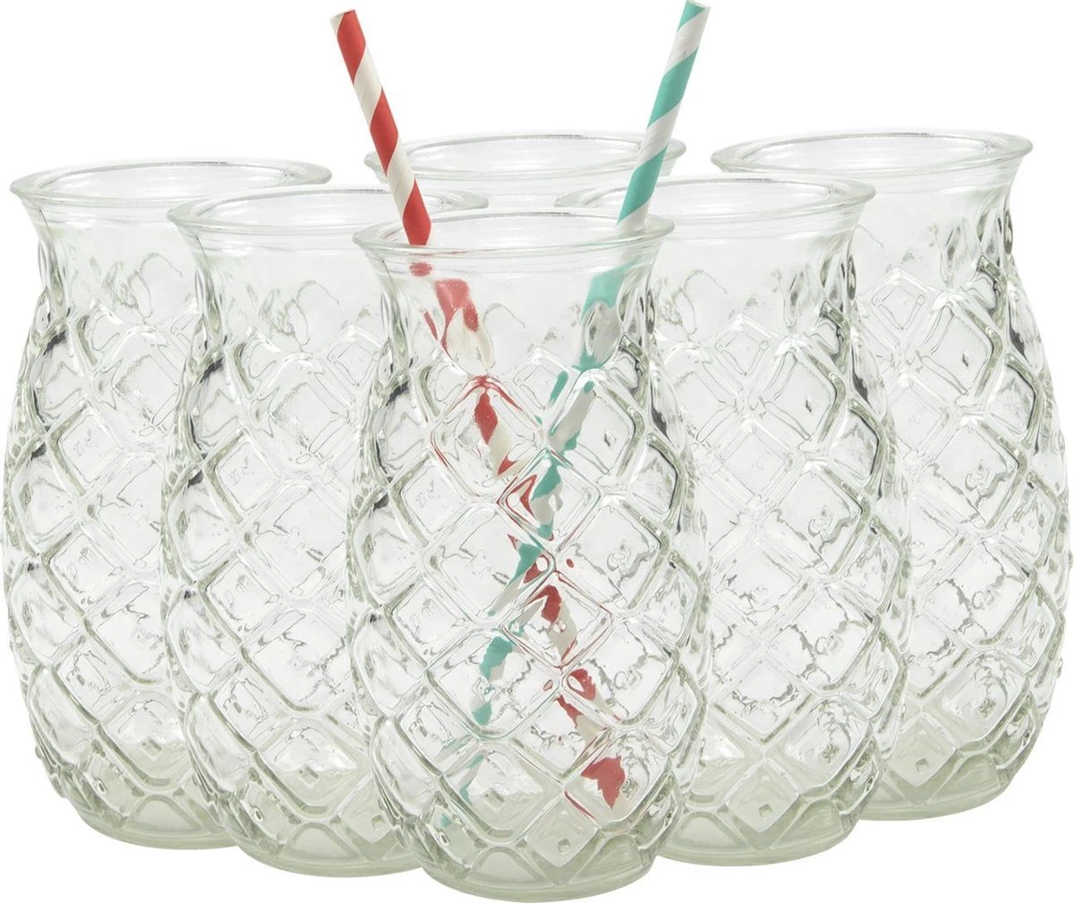 Leuke glazen bekers in ananas vorm. Leuk voor in de zomer of om frisse dranken in te serveren! Eigenschappen: – Ananas vorm – Goede grip