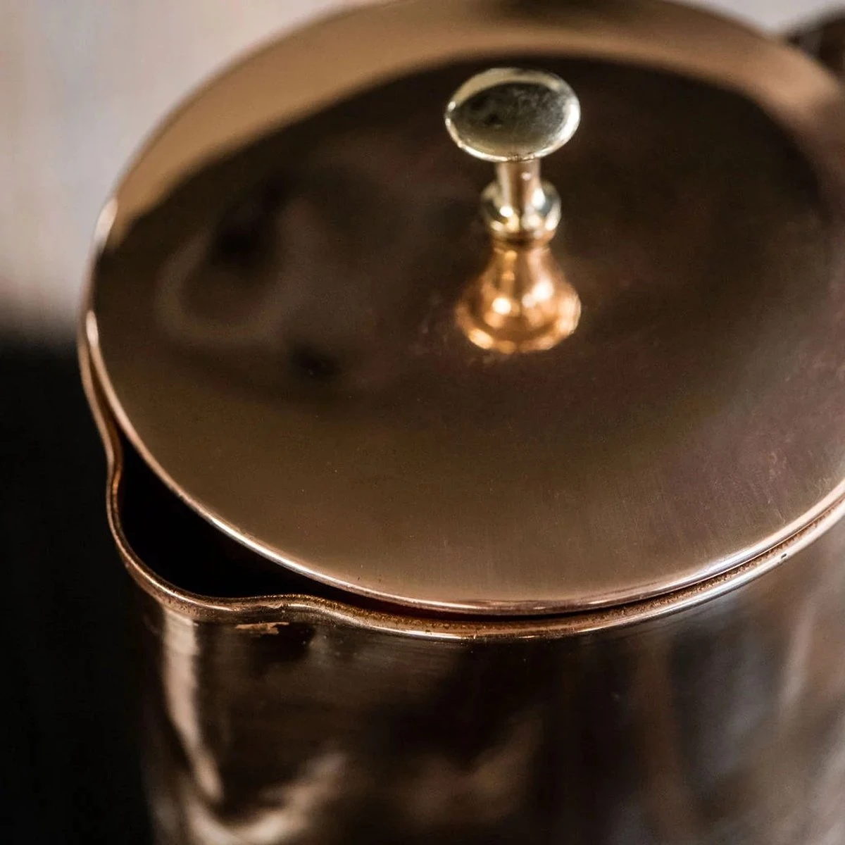 Deze bijzondere handgemaakte kan is gemaakt van puur koper.