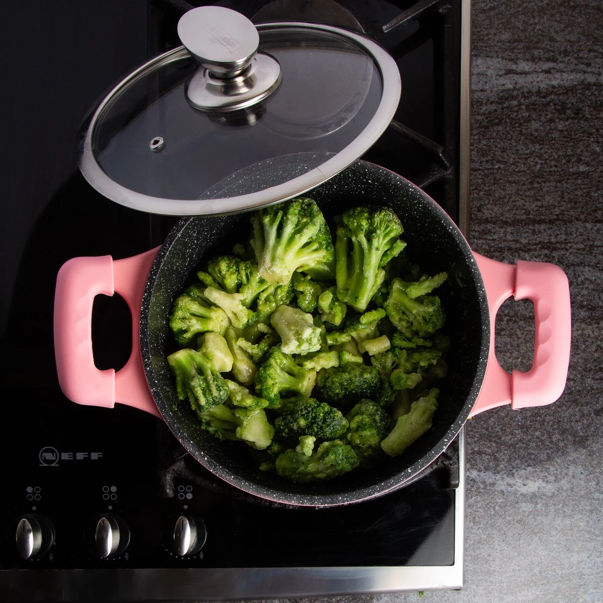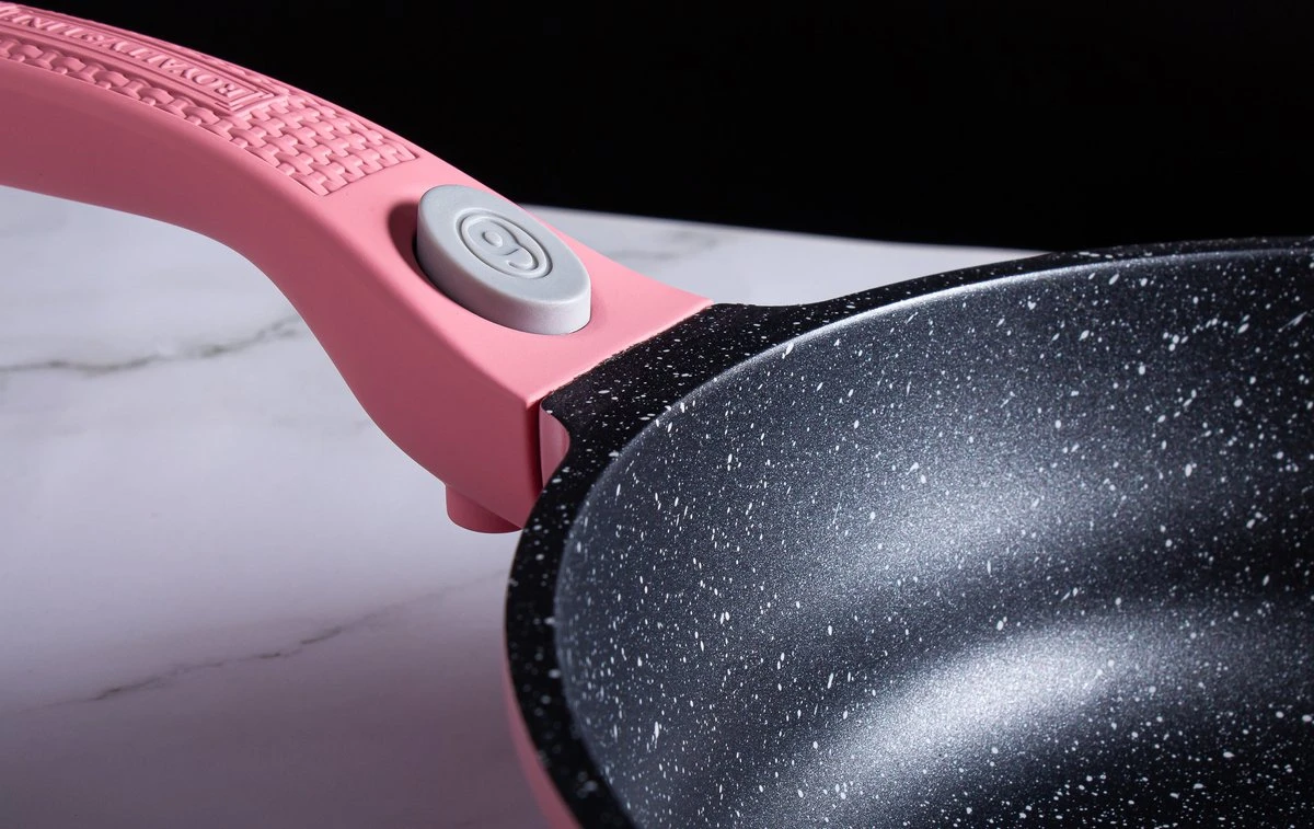 De duurzame pannen zijn met Zwitserse precisie vervaardigd en hebben een hoogwaardige antiaanbaklaag met een marmeren coating en een duurzame aluminium behuizing. Door de zeer harde marmeren coating hoef jij tijdens het koken geen boter of olie te gebruiken, omdat het voedsel niet aan de pan blijft plakken. Bovendien is deze coating vrij van de giftige stof PFOA. Dit maakt het heel gemakkelijk om gezonde, smaakvolle en magere maaltijden te bereiden.