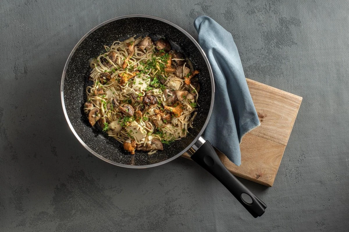 De Stonehenge koekenpannen zijn gemaakt van aluminium en aan de binnenkant voorzien van een non-stick coating in hardsteen decor. Dankzij de non-stick coating blijven etensresten niet plakken en brandt je eten vrijwel nooit aan. Verder gebruik je deze pan op alle hittebronnen.